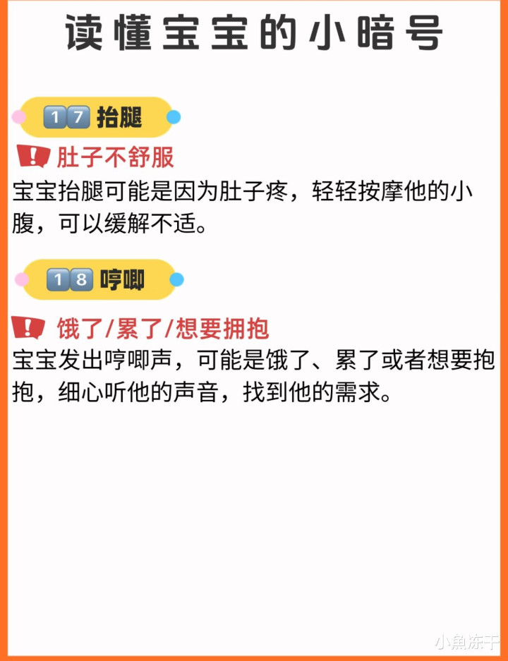 新手爸妈常常会陷入这样的困惑:宝宝又哭又闹,怎么哄都不管用,完全摸不清孩子的需求,带娃仿佛成了一场“猜谜游戏”。其实,宝宝虽然不会说话,但他们有自己独特的“语言”。掌握这18个小暗号,就能轻松读懂宝宝的需求,带娃也会变得轻松许多。